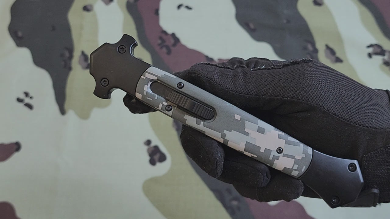 Step into bold tactical styling with the 13" Tactical Digi Camo / Black D/A Stiletto OTF, a striking Italian-inspired out-the-front automatic built for speed, precision, and visual impact. Combining rugged design with smooth double-action performance, this knife is engineered to stand out while delivering dependable functionality.