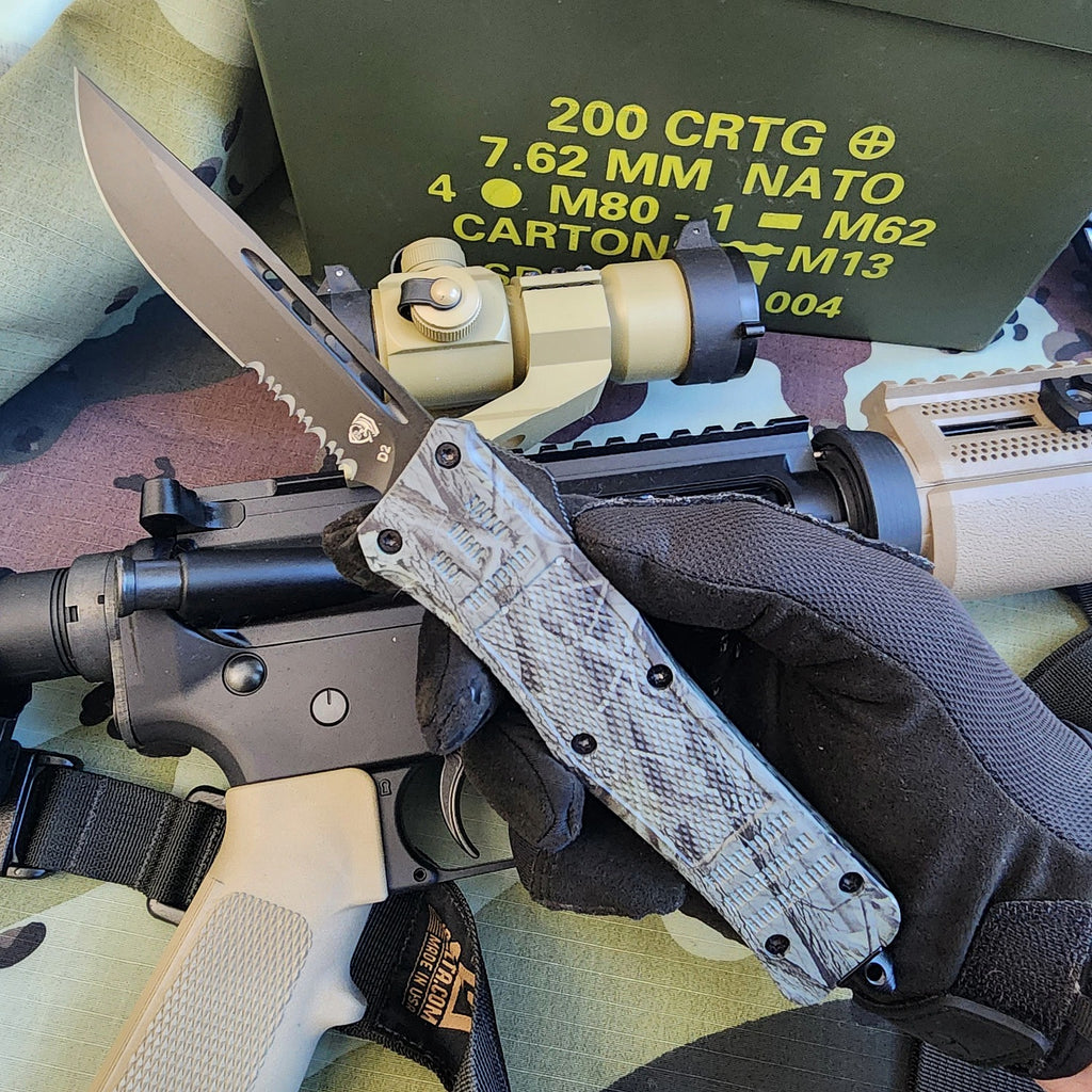 When your task demands precision and speed, reach for the Venom 4-TR Gen 5 OTF Knife. This isn't just a tool; it's a high-performance piece of tactical gear engineered for those who won't settle for less than the best. Experience the pinnacle of Out-The-Front (OTF) technology, meticulously crafted by Venom USA